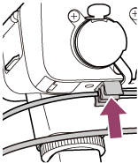 Coloque o microfone no suporte do microfone de modo a que o nome do modelo (ECM-XM1) inscrito no microfone fique virado para cima, feche a tampa do suporte e, em seguida, tranque o suporte.