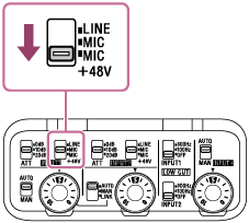 Coloque o interruptor INPUT1 (LINE/MIC/MIC+48V) na posição “MIC+48V”.