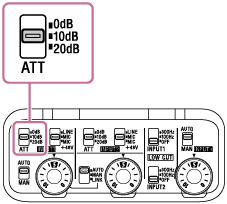 Встановіть перемикач ATT (INPUT1) в «10dB». (Рекомендується)