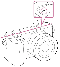 -merket viser plasseringen av bildesensoren. Når du måler den nøyaktige avstanden mellom kameraet og fotoobjektet, må du vise til plasseringen av horisontallinjen.