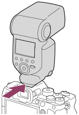 Για λεπτομέρειες σχετικά με το φλας, ανατρέξτε στο εγχειρίδιο οδηγιών για το φλας.- Τοποθετήστε το φλας (πωλείται χωριστά) στο προϊόν.