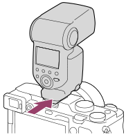 Pentru detalii cu privire la bliţ, consultaţi manualul de instrucţiuni pentru bliţ.- Ataşaţi bliţul (comercializat separat) la produs.