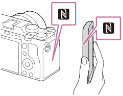 - Pe iPhone, lansaţi Imaging Edge Mobile, apoi selectaţi [Connect with the camera through One-touch (NFC)] din [Connect with a new camera].