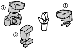 للتفاصيل عن إعدادات الفلاش الخارجي للكاميرا، ارجع إلى تعليمات التشغيل المرفقة مع الكاميرا.