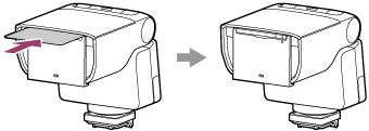 A beépített széles panel használatához óvatosan húzza ki a széles panelt a visszaverőlemez mentén a vaku elülső részéből, és a széles panel lehajtásával takarja le a villanócsövet.