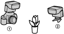 - Podłącz do aparatu inną lampę błyskową tego samego modelu (HVL-F28RM/HVL-F28RMA), która jest skonfigurowana jako pilot lub bezprzewodowego pilota radiowego.
