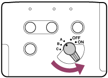 Поверніть перемикач живлення на цьому спалаху в «A», «B» або «C».