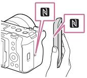 - Šis ženklas nurodo sąlyčio tašką, per kurį užmezgamas ryšys tarp fotoaparato ir NFC palaikančio išmaniojo telefono.
