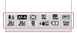 Dacă apăsați butonul Fn (funcție) în timpul fotografierii, pe ecran va apărea un meniu care conține funcții utilizate frecvent (meniul de funcții), cum ar fi nivelul de înregistrare audio și modul de focalizare. Acest lucru vă permite să accesați rapid funcțiile.