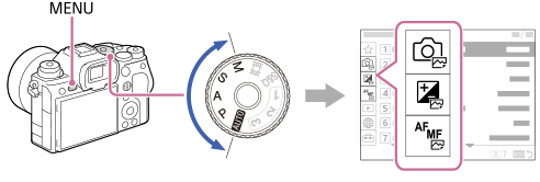 : Menupunkter vist i både optagetilstandene for stillbilleder og filmoptagetilstandene