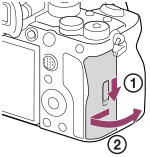 Skyv bryteren på minnekortdekselet for å åpne dekselet.