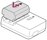 Jos käytät tuotetta latausmerkkivalon kanssa, huomaa, että tuotetta ei ole kytketty irti virtalähteestä, vaikka lamppu sammuu. - Kun käytetään upouutta akkua tai akkua, jota ei ole käytetty pitkään aikaan, CHARGE-valo voi vilkkua nopeasti, kun akkua ladataan. Jos näin tapahtuu, irrota akku ja aseta se sitten takaisin lataamisen jatkamiseksi.