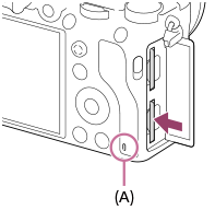 Open de afdekking van de geheugenkaart en verzeker u ervan dat de toegangslamp (A) niet brandt, en duw daarna de geheugenkaart eenmaal licht naar binnen om hem te verwijderen.