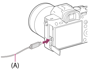 (Oppsett) er stilt inn på [Masselager]. - Koble kameraet til datamaskinen ved hjelp av USB-kabelen (A).