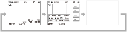 - Hvis du vil bytte informasjonen som vises i søkeren, trykker du på DISP-knappen mens du ser inn i søkeren.