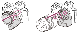 - O Adaptador de montagem LA-EA2 ou LA-EA4 (vendido separadamente) e a pega vertical (vendida separadamente) não foram concebidos para serem colocados ao mesmo tempo. Se os colocar ao mesmo tempo, o espaço entre o Adaptador de montagem e a pega vertical torna-se mais estreito, dificultando segurar a câmara.