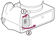 Hvis kameraet er tændt, kan du bruge kameraet med strøm fra computeren osv., men batteripakken oplades ikke.