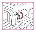 Juster dioptri-justeringsknappen i overensstemmelse med dit syn, indtil visningen står helt klar i søgeren. Hvis det er svært at betjene dioptri-justeringsknappen, skal øjestykkedelen tages af, inden knappen betjenes.