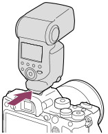 - هنگام تصویربرداری با یک فلاش خارجی، اگر سرعت شاتر بر روی سریع تر از 1/4000 ثانیه تعیین شده باشد ممکن است خطوط راه راه روشن و تیره ای روی تصویر پدیدار شوند. اگر این اتفاق می افتد، Sony تصویربرداری در حالت فلاش دستی و تنظیم درجه فلاش بر روی 1/2 یا بالاتر را توصیه می کند.