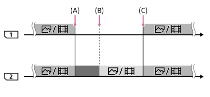 Kun täyteen tullut muistikortti vaihdetaan tallennuskelpoiseen muistikorttiin, kamera aloittaa samanaikaisen tallennuksen valitulla asetuksella uudelleen.