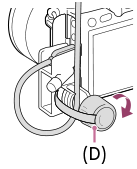 - Helyezze a kábelt a tartóba, majd rögzítse a kábelt a rögzítőtárcsával (D).