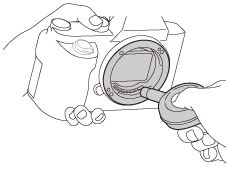 - Neklaďte špičku ofukovacieho zariadenia do dutiny za oblasťou bajonetu objektívu, aby sa špička ofukovacieho zariadenia nedotkla obrazového snímača.