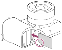- Με την κομμένη γωνία προς την κατεύθυνση που φαίνεται στην εικόνα, εισαγάγετε την κάρτα μνήμης έως ότου ασφαλίσει στη θέση της. Εισαγάγετε σωστά την κάρτα μνήμης. Στην αντίθετη περίπτωση ενδέχεται να προκληθεί δυσλειτουργία.