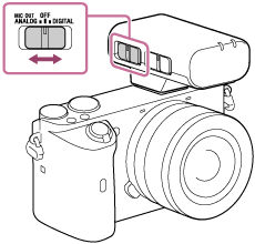 Vælg din ønskede lydudgang med skydekontakten (MIC OUT ANALOG/Strøm OFF/DIGITAL) på modtageren.