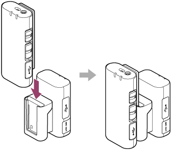 Genom att använda den medföljande kontaktskyddshållaren, kan du förvara mottagaren och mikrofonen tillsammans.