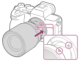- Τοποθετήστε το φακό ευθυγραμμίζοντας τα δύο λευκά σημάδια (δείκτες τοποθέτησης) που υπάρχουν στο φακό και στη κάμερα.