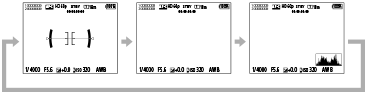 - Hvis du vil bytte informasjonen som vises i søkeren, trykker du på DISP-knappen mens du ser inn i søkeren.