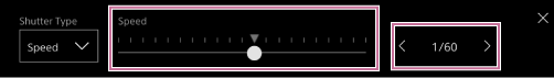 Настройте затвора с помощта на плъзгача [Speed] (Скорост) или бутоните за настройка [Speed] (Скорост).