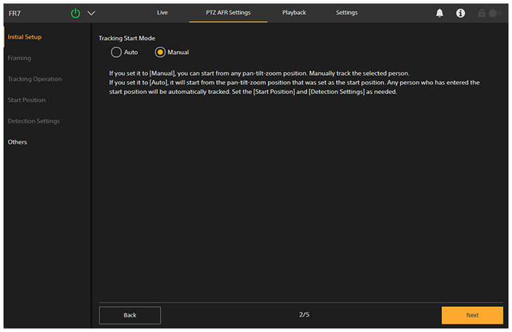 Zobrazí se obrazovka [Initial Setup] nastavení PTZ AFR.