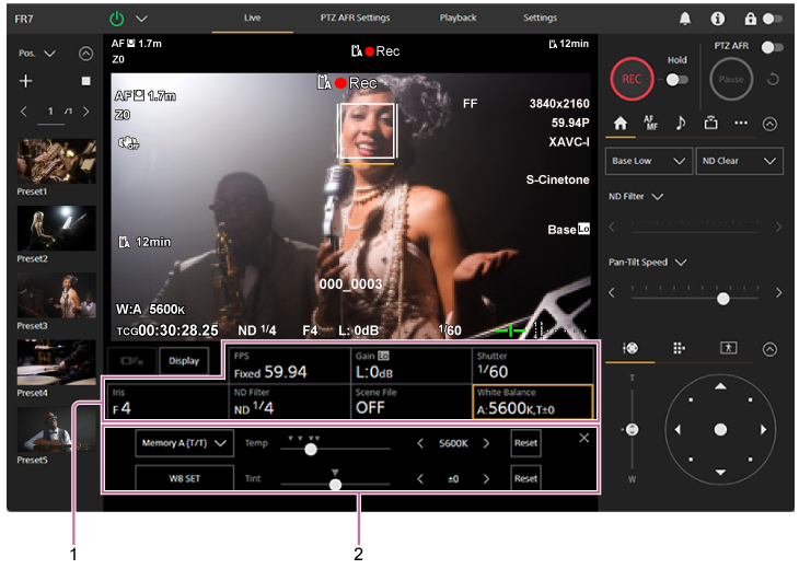 Du kan justere hvidbalancen vha. live driftsskærmen i webappen for at indhente en hvidbalance, der får billedet til at se mere naturligt ud.
