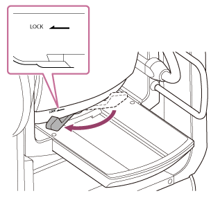 - Αν η μετατόπιση/κλίση της κεφαλής της κάμερας δεν κλειδώνει όταν ο μοχλός κλειδώματος βρίσκεται στη θέση LOCK, μετακινήστε χειροκίνητα την κεφαλή της κάμερας μέχρι να κλειδώσει στη θέση της.