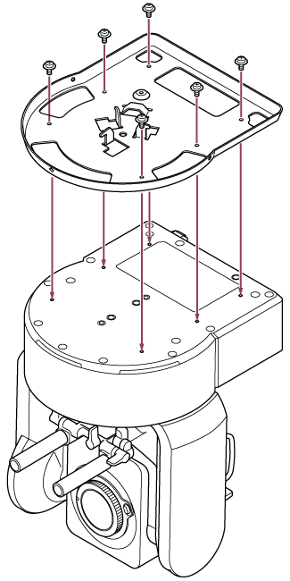 Pričvrstite nosač tijela i nosač za strop s pomoću tri isporučena vijka za zaključavanje rotacije (M3×8).