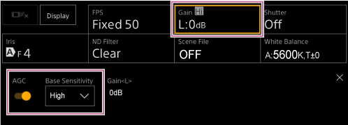 Pritisnite gumb [ISO/Gain] na osnovnoj ploči konfiguracije fotoaparata i postavite funkciju [Base Sensitivity] na ploči prilagodbe ISO / jačina signala na [High] ili [Low].