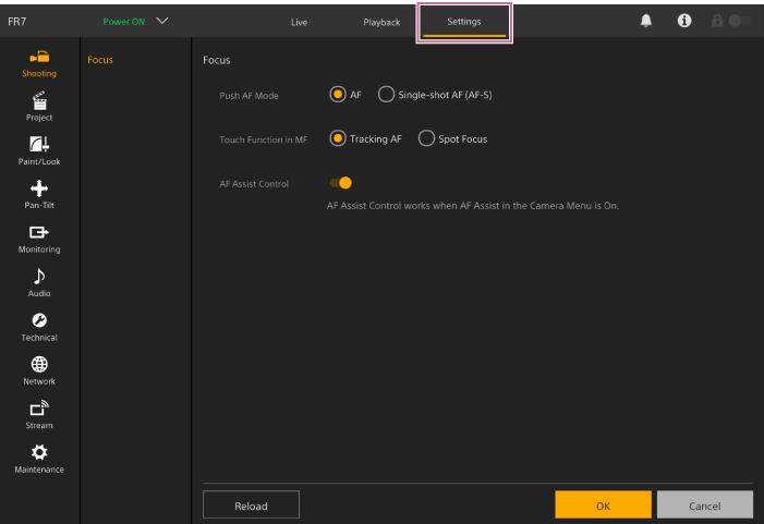 Paspauskite skirtuką [Settings] (nustatymai), kad būtų parodytas nustatymų ekranas (toliau vadinama „žiniatinklio meniu“).