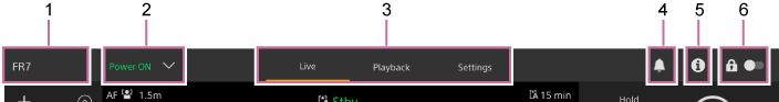 Skirtukas [Live] (tiesioginis): parodomas tiesioginio valdymo ekranas.