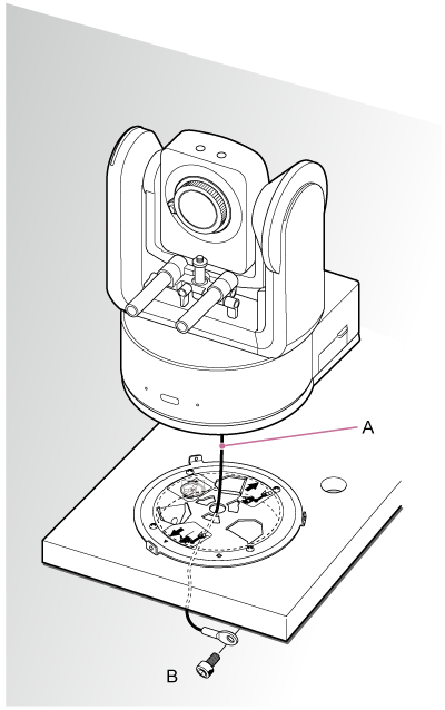 - Prie CIB-PCM1 lubų laikiklio (priedas) prikabinkite pridedamą apsaugos nuo kritimo lynelį, kad įrenginys nenukristų.