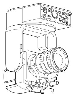Tada uždėkite objektyvą. Žr. „Objektyvo uždėjimas“ ir vadovaukitės informacija dalyje „Atsargumo priemonės uždedant / nuimant objektyvą“, „Objektyvo jungiklių tikrinimas“ ir „Atsargumo priemonės naudojant keičiamo“.