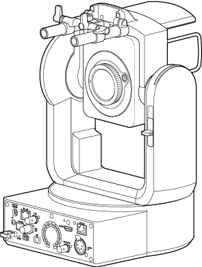 - Jei fotoaparato galvutės pasukimo / pakreipimo funkcija neužrakinama svirtelę nustačius į padėtį LOCK, pasukite fotoaparato galvutę ranka ir užfiksuokite ją.