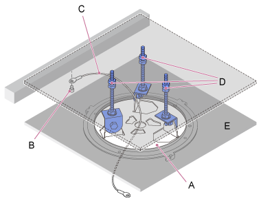 Pritvirtinkite lubų laikiklį prie montavimo plokštelės (priedas), tada plokštelę pritvirtinkite prie lubų.