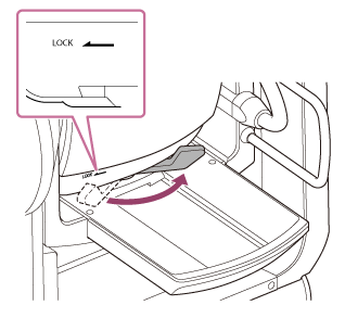 Paslinkite pasukimo / pakreipimo užrakto svirtelę į padėtį LOCK, kad užrakintumėte fotoaparato galvutės pasukimo / pakreipimo funkciją.