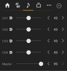 Naudodami GUI valdymo skydelį galite pereiti prie fotoaparato meniu, valdyti klipų atkūrimą ir kitas funkcijas. Paspausdami skirtuką [Cam GUI] (fotoaparato GUI) galite įjungti GUI valdymo skydelį.