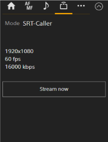 Kai nustatyta kaip [SRT-Caller] (SRT siuntėjas), šiame ekrane galima pradėti / sustabdyti transliaciją.