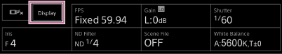 Function Nuoroda FPS „Sulėtintas ir pagreitintas filmavimas“ „ISO/Gain“ (ISO / stiprinimas) „Bazinio jautrumo nustatymas“, „Automatinis stiprinimo reguliavimas“ ir „Rankinis stiprinimo reguliavimas“ dalyje „Stiprinimo reguliavimas“ „Exposure Index“ (ekspozicijos indeksas) „Bazinio jautrumo nustatymas“, „Tamsių ir šviesų sričių pasiskirstymo keitimas įrašytame vaizde“ Shutter „Automatinis išlaikymo reguliavimas“ ir „Rankinis užrakto reguliavimas“ dalyje „Užrakto reguliavimas“ Diafragma „Automatinis diafragmos reguliavimas“ ir „Rankinis diafragmos reguliavimas“ dalyje „Diafragmos reguliavimas“ „ND Filter“ (ND filtras) „Apie ND filtrą“ dalyje „Šviesos lygio reguliavimas (ND filtras)“ „Scene File“ (siužeto failai) „Vaizdo apžvalga“ ir kitos temos dalyje „Vaizdų fiksavimas su norimu vaizdu“ „Base Look/LUT“ (bazinis vaizdas / LUT) „Vaizdų fiksavimas koreguojant vaizdą vėlesnio redagavimo metu“ White Balance „Baltos spalvos balanso reguliavimo ekranas“ -