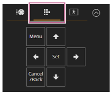- Joystick-delen av framingkontrollpanelet vises som vist nedenfor når pan/tilt-drift er deaktivert, når pan/tilt-initialisering er nødvendig, eller når det oppstår en feil i objektivkontrolleren.