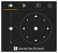 - Obszar joysticka w panelu kadrowania jest wyświetlany w przedstawiony poniżej sposób, gdy funkcja obrotu w poziomie/pionie jest wyłączona, wymagane jest jej zainicjowanie lub wystąpił błąd w sterowniku obiektywu.