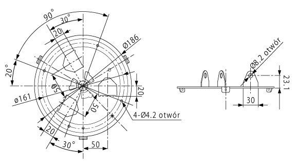 - Zakres obrotu w pionie: od −30 st. do +195 st.